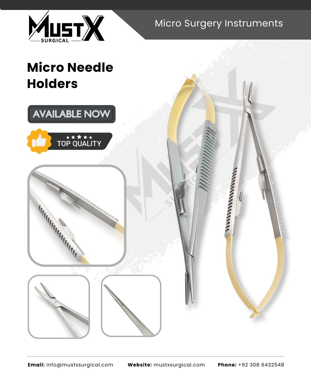 The instrument is engineered with ultra-fine precision jaws that securely hold micro needles without slipping or damaging them, making it ideal for delicate tissue work.