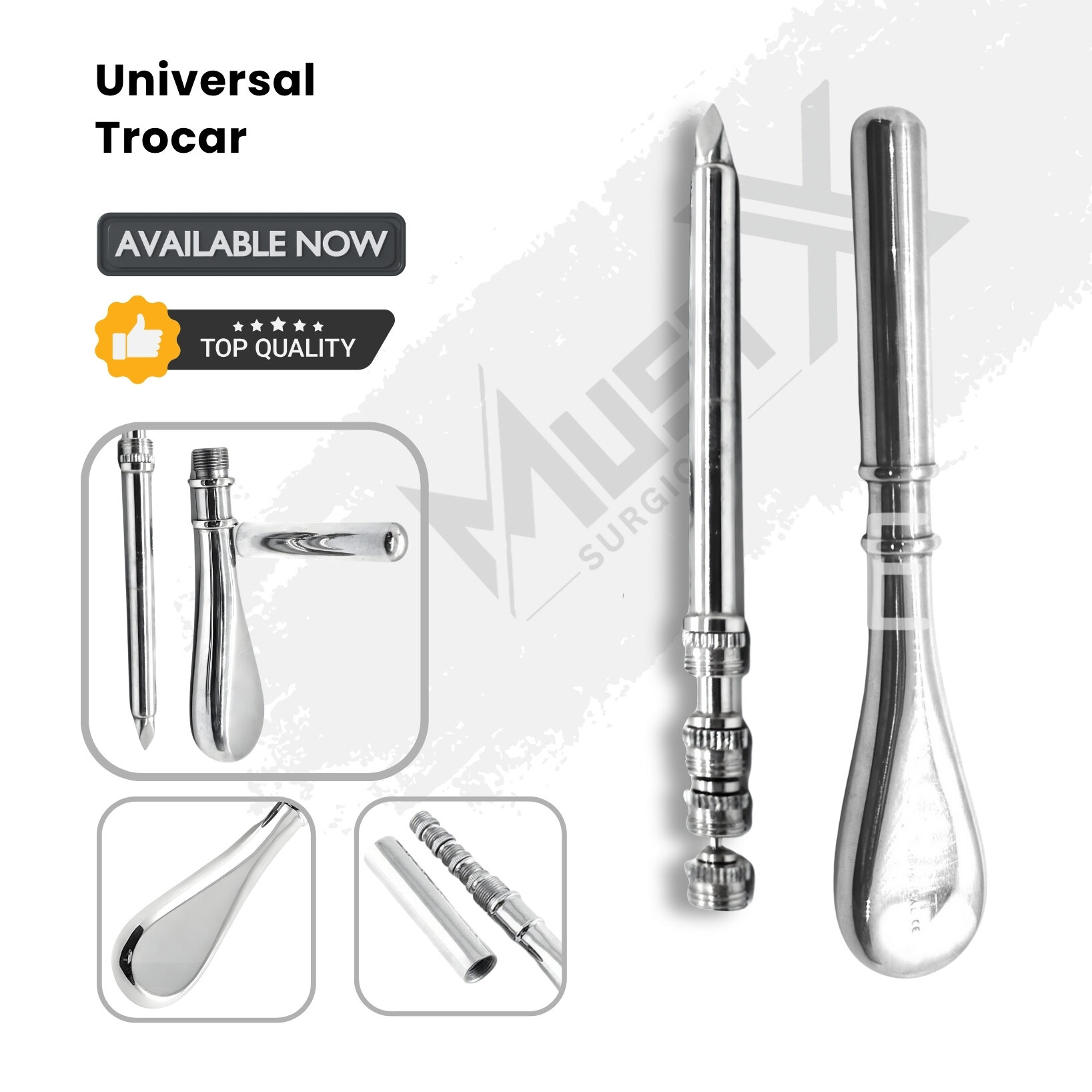 Introducing the Universal Trocar, a top-tier surgical instrument meticulously crafted for medical professionals who demand excellence in performance. Manufactured by MUSTX Surgical, based in Sialkot, Pakistan, this instrument exemplifies premium quality and precision engineering, ensuring it meets the rigorous demands of various surgical procedures. Made with high-grade materials to provide unmatched durability, the Universal Trocar is trusted by healthcare providers globally, making it the ideal addition to your medical toolkit.